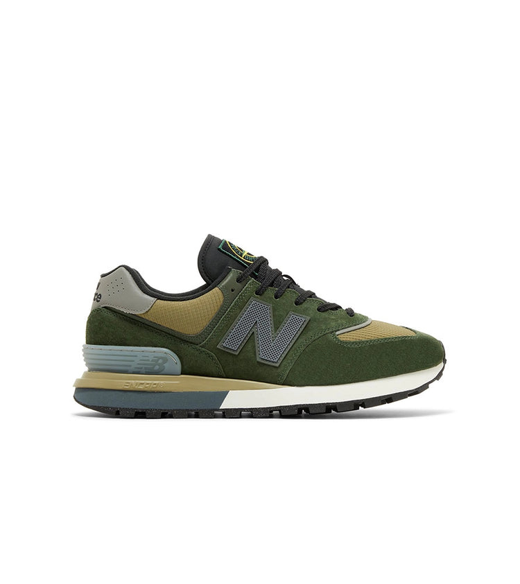 Кросівки New Balance x Stone Island 574 Legacy Dark Green – Культова модель з колаборації New Balance x Stone Island, виготовлена в лімітованому тиражі, яка поєднує в собі високий комфорт і якість  з класичним силуетом. Дизайн виконаний у приємній зеленій палітрі. Верхня частина зі зносостійкої замші та сітки, яка з додатковим водонепроникне покриття “Ripstop”. Ripstop – це тип тканини комбінованого переплетення, у структурі якого використана укріплена армовані нитки. А також, використання екологічно чистих матеріалів, що забезпечує міцність та довговічність в експлуатації. Внутрішня підкладка виготовлена з м’якого текстилю та синтетики, що забезпечує комфорт під час ходьби або тренувань. Нейлоновий язичок, що вказує на міцну утилітарність. Світловідбиваючі акценти, які додають більш цікавості моделі. Кросівки мають підошву зі зносостійкої резини, що забезпечує хороше зчеплення з поверхнею та додатковий комфорт під час ходьби або бігу. Легендарний патч знаходиться на язику та завершує композицію.