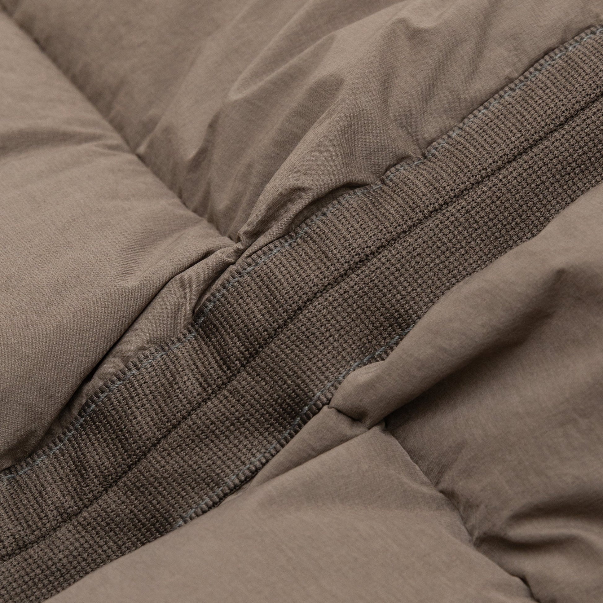 Виготовлений з легкого еластичного нейлону зі стьобаною текстурою, він має застібку-блискавку, яка перегукується з бічними кишенями, розташованими під кутом, піднятим коміром з капюшоном та логотипом на рукаві.